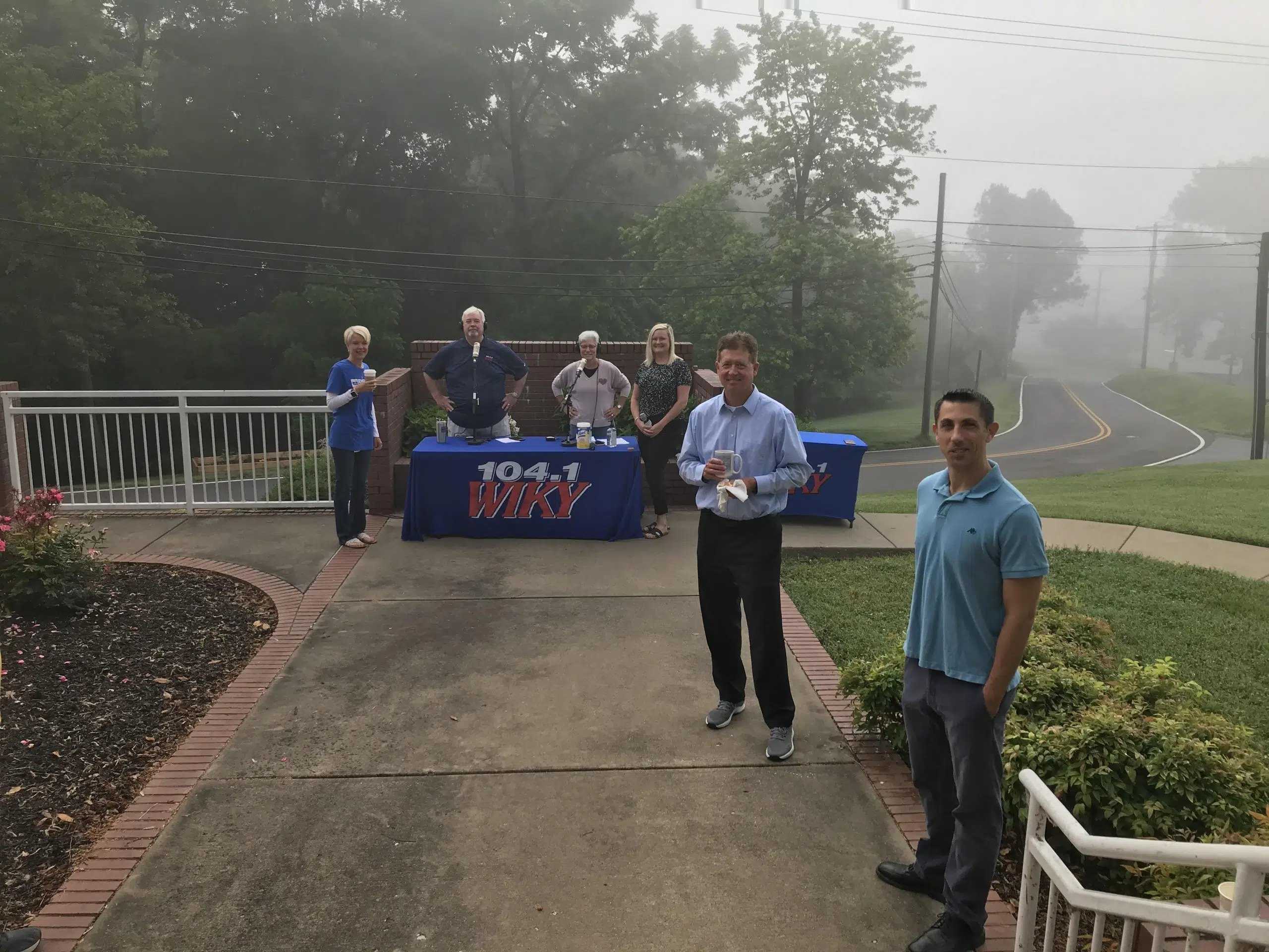 To mark the occasion, Dennis Jon Bailey and Diane Douglas broadcast the 7:00am hour of the Morning Show from the front porch of the station’s home, which they call “Stately Wayne Manor,” as they visited with a representative of Visit Posey County.