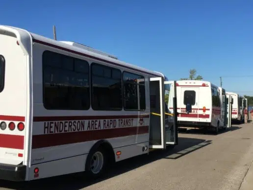 HART — the Henderson Area Rapid Transit — has resumed service. The buses were halted yesterday because of weather conditions, but they’re running again today.