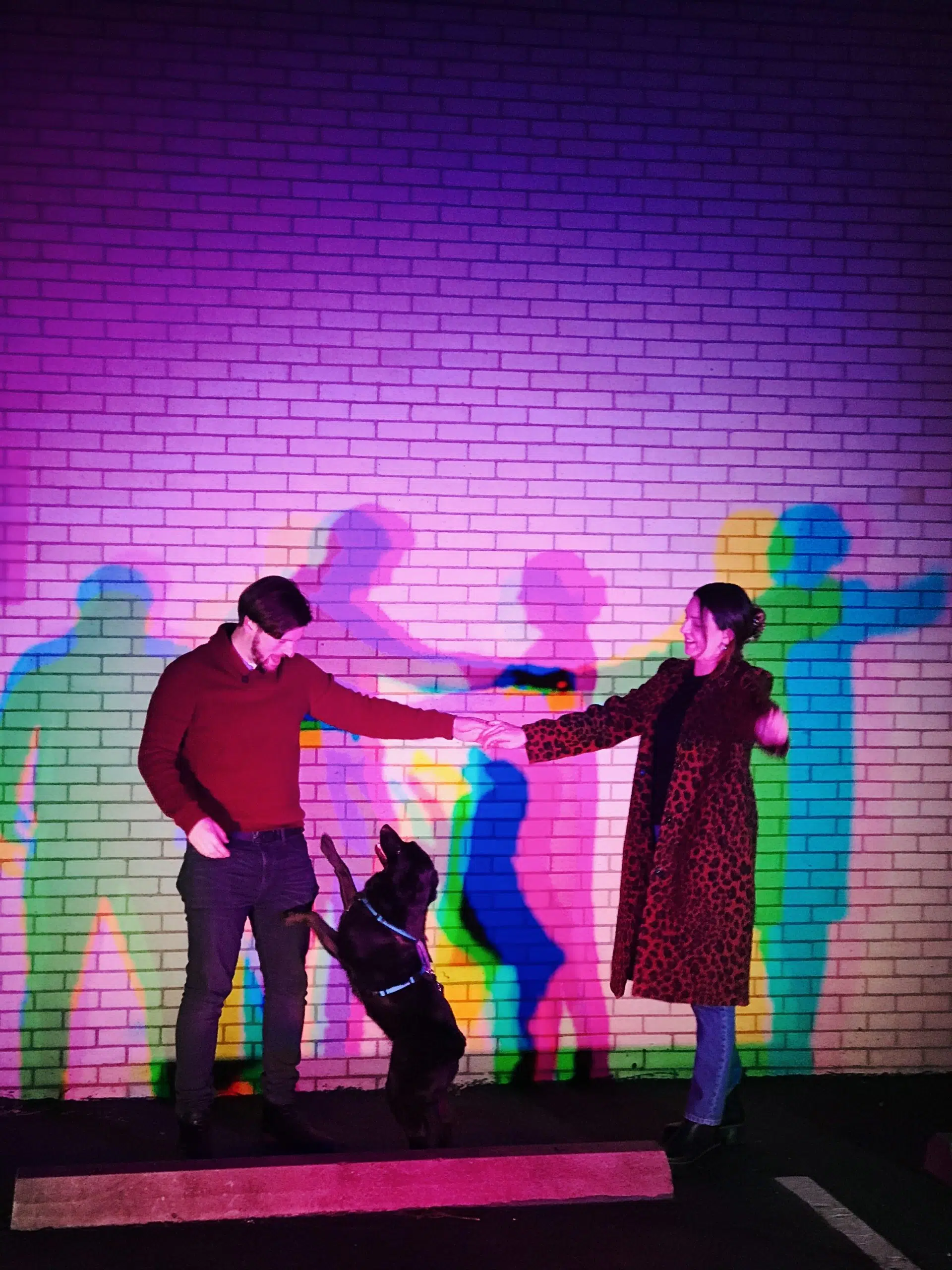 The event, Love & Light, features multiple colored LED lights projected onto the wall of the Children’s Museum of Evansville (cMoe). This provides a great photo op for families. The event is free and everyone is encouraged to share their photos on social media using #DTEVV.