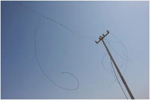 This caused two poles to be pulled down on opposite sides of the road.