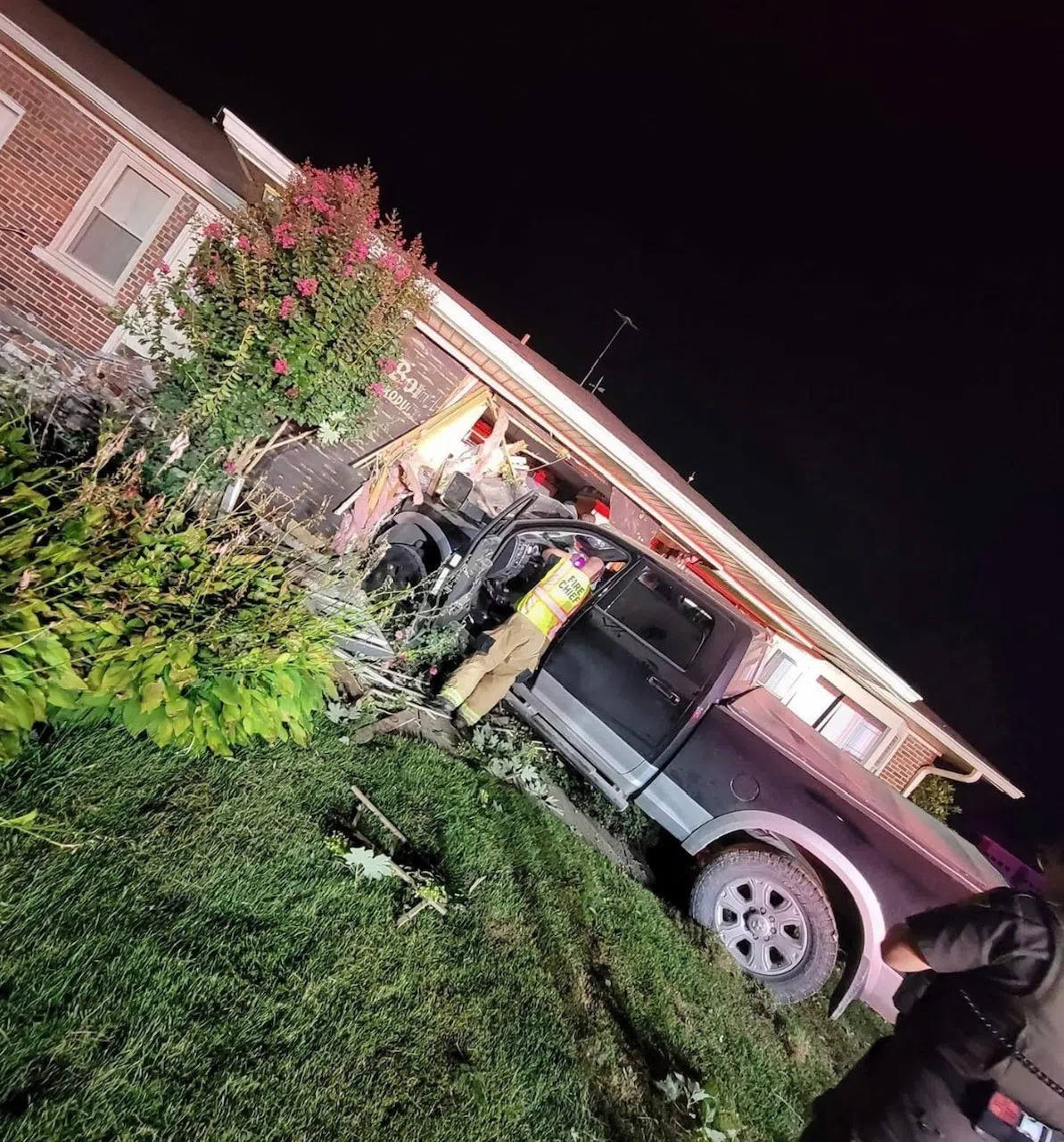 A truck hit a house sending it through the kitchen just after 2:00 this morning.