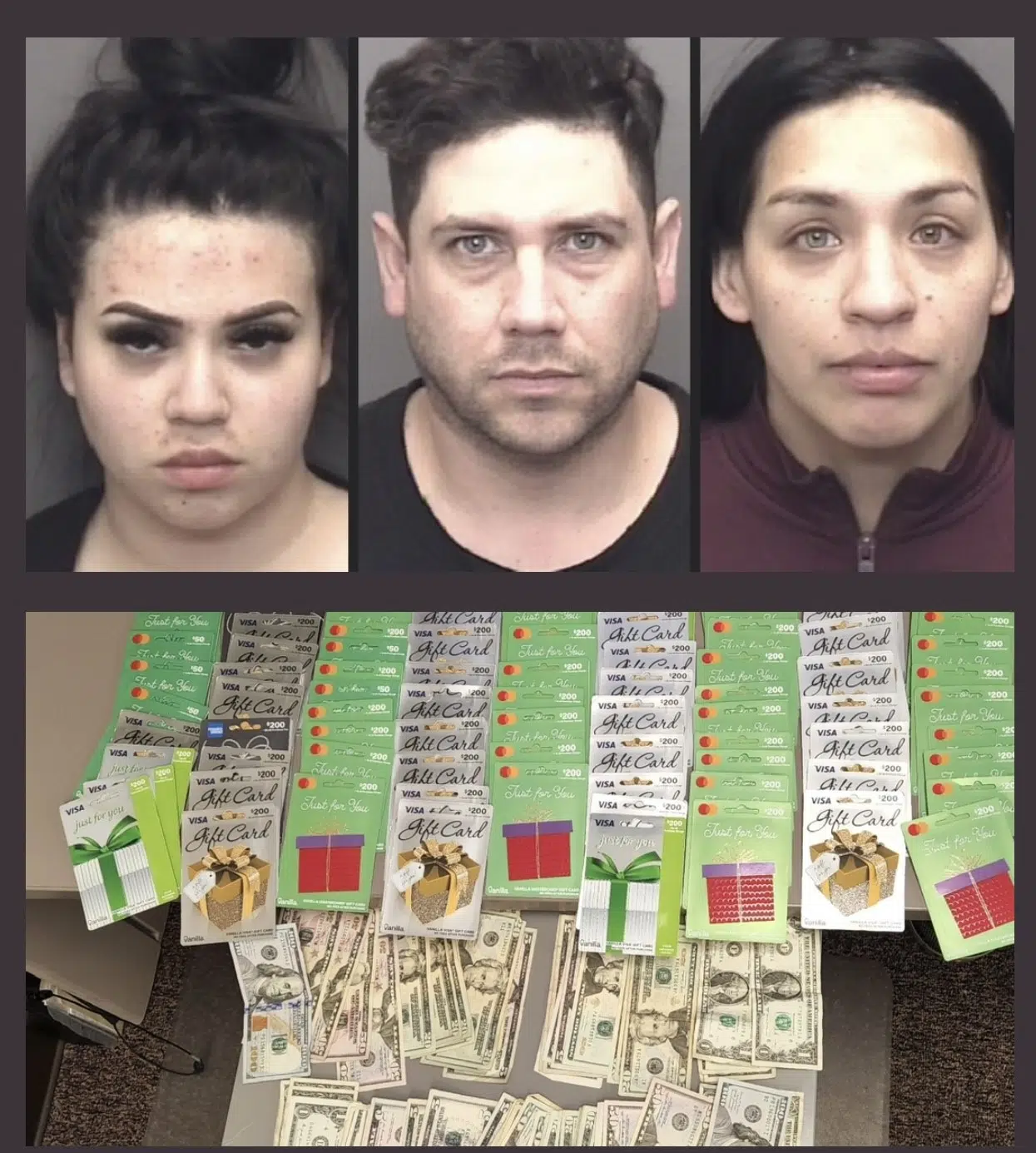 Thousands of dollars worth of gift cards were found inside the vehicle along with purses and large amounts of cash.