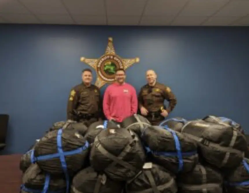 The Vanderburgh County Sheriff’s Office received twenty zero degree sleeping bags from an Evansville church Wednesday.