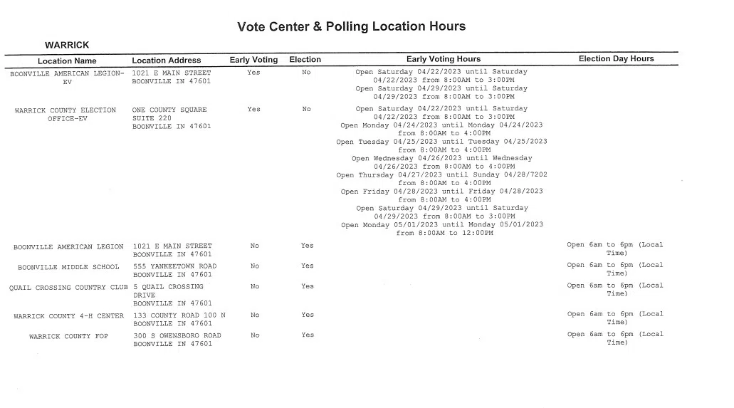 Warrick County Polling Centers For May 2