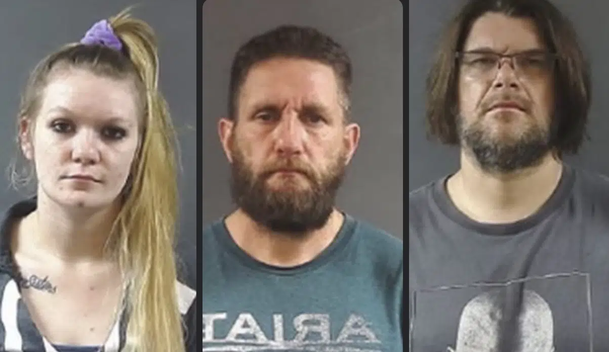 Mt. Vernon Police arrested three people Wednesday after they were spotted loading items into a pickup truck.