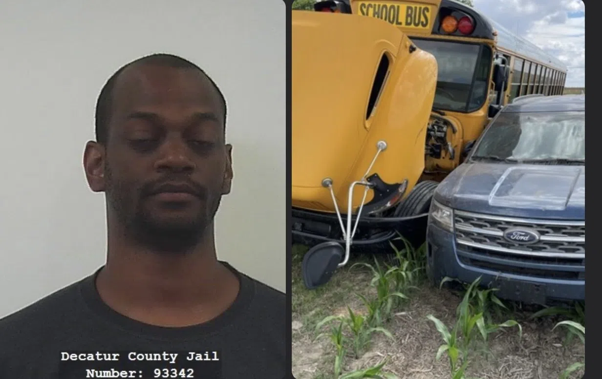 He fled from police in the bus and eventually went off road into numerous fields and yards.
