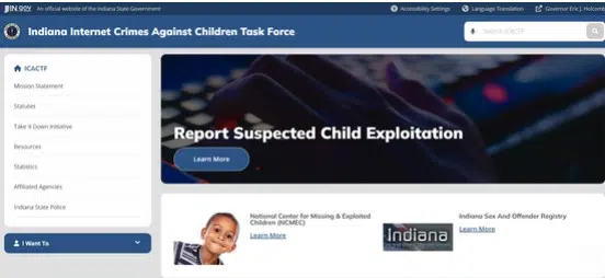 The Indiana Internet Crimes Against Children Task Force has created a new website.