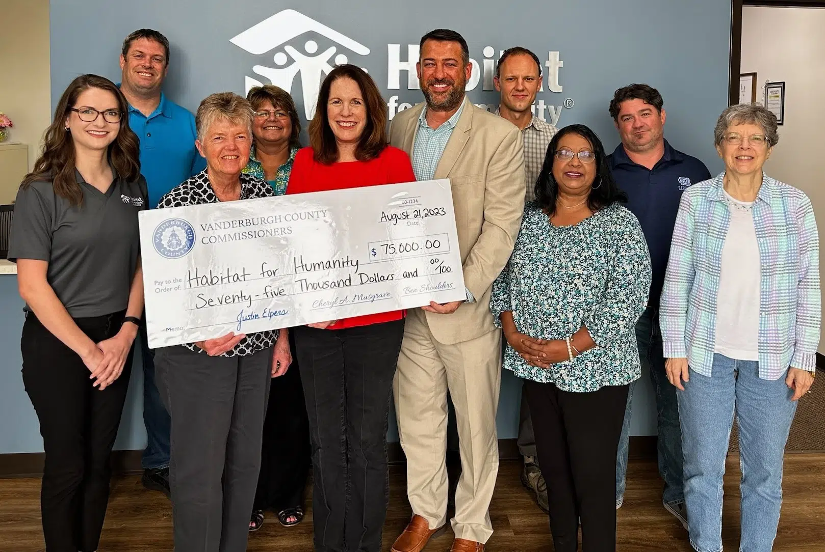 The Vanderburgh County Council presented Habitat for Humanity of Evansville with a check on Monday.