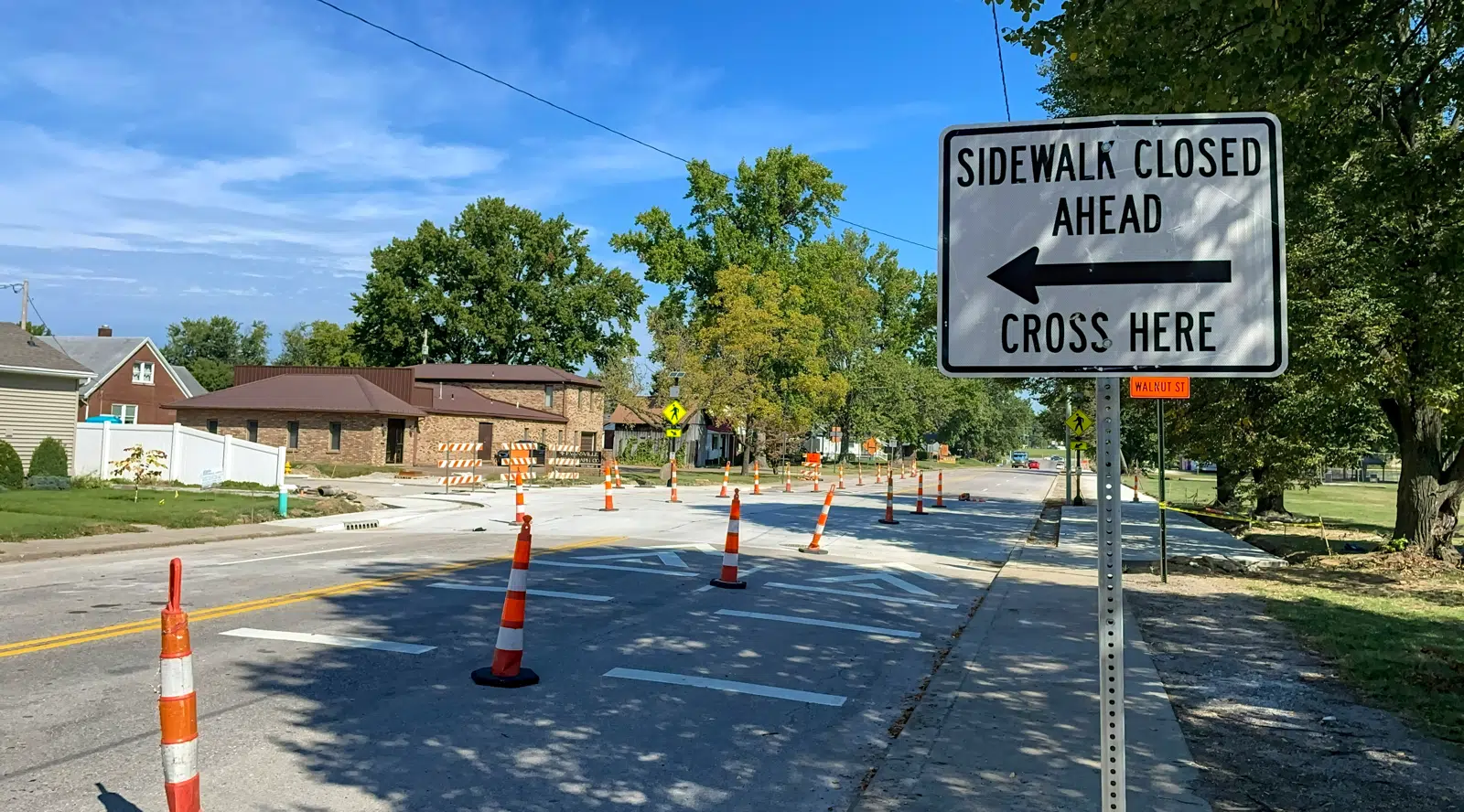 A raised section of the roadway called a speed table was installed to remind drivers that Walnut Street shares space with pedestrians and bicyclists.