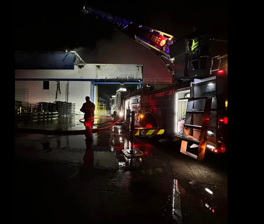 Upon arrival, crews could see a large amount of fire coming from the roof of the Metalsa building.