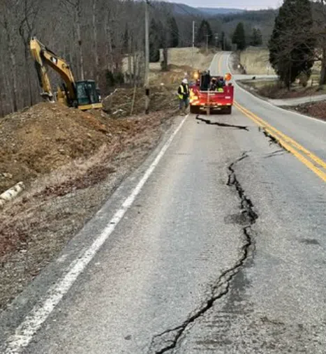 The Indiana Department of Transportation says there was a landslide that caused the pavement to crack.