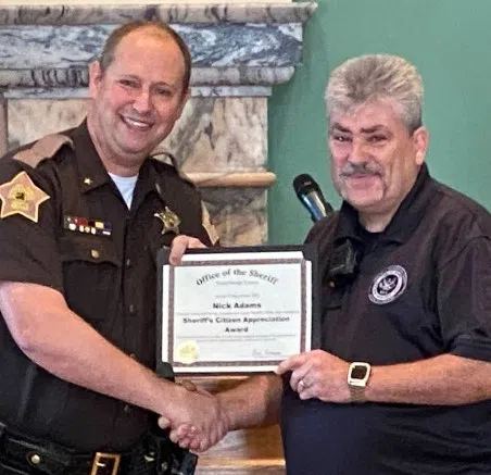 Deputy EMA Director Nick Adams was presented an award for his assistance in a recent incident that led to the capture of a dangerous suspect.