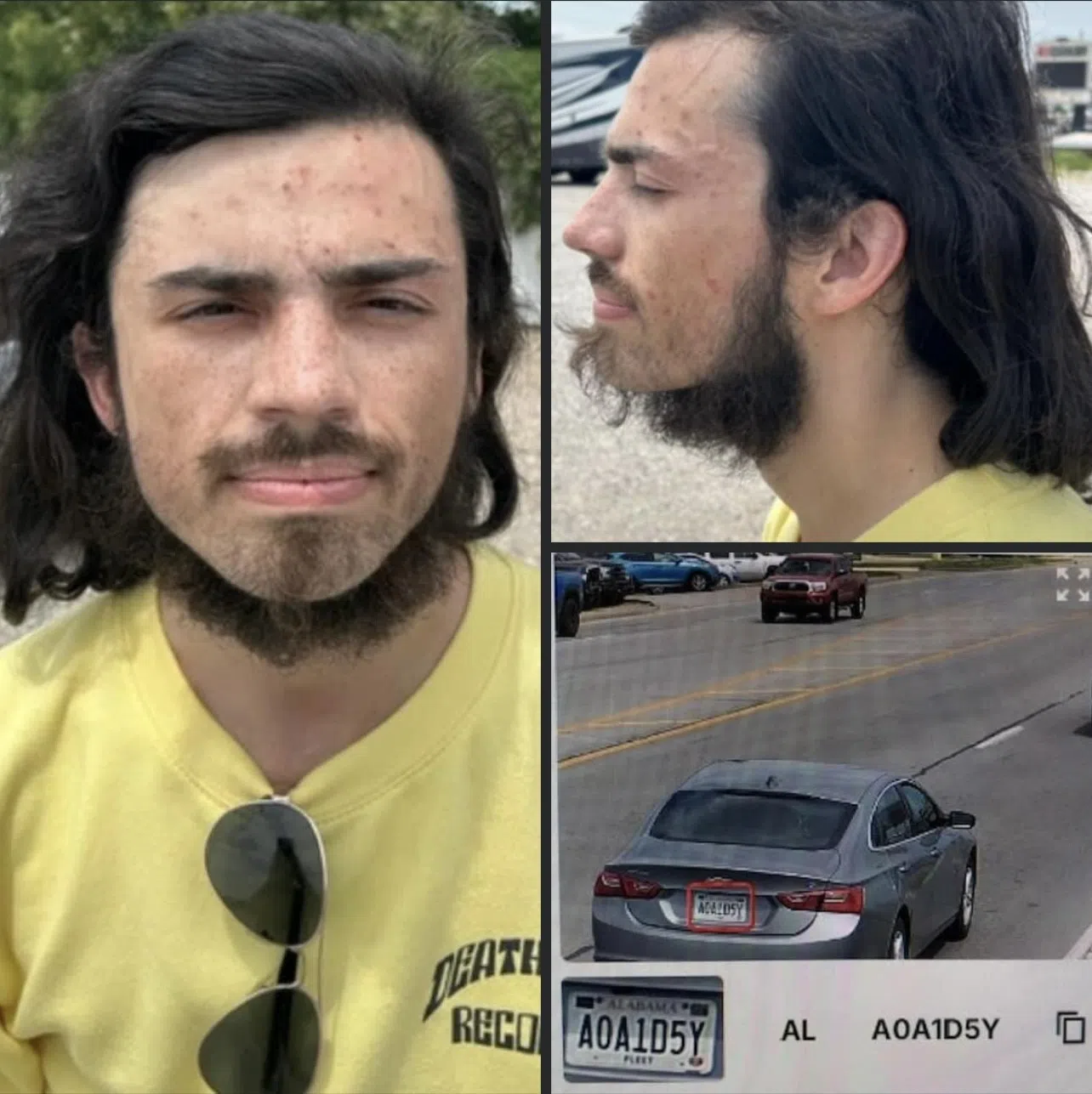 The individual drives a gray 2023 Chevy Malibu 4-door with an Alabama license plate.