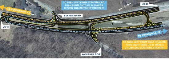Two Restricted Crossing U-Turns will be placed at the intersections of Wolf Hills Drive and Stratman Road.