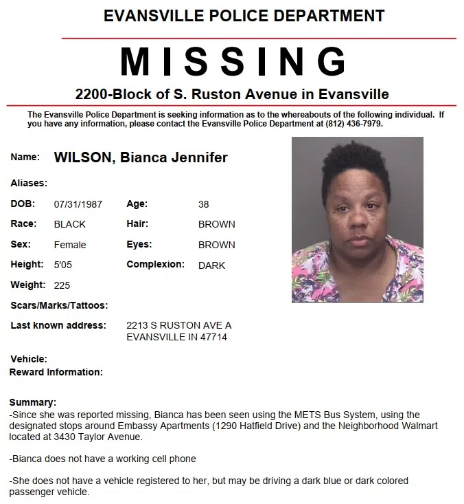If you know Bianca’s whereabouts, call the Evansville Police Department.