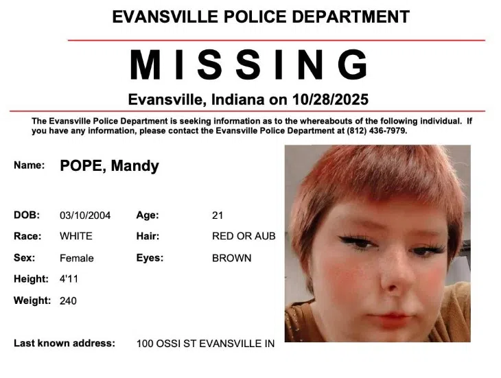 Evansville Police are searching for 21-year-old Mandy Pope.