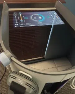 If you look closely at the glass monitor, you can see that each function is at 100%. 20 minutes into the 30-minute session, I started to feel life returning to my foot. At one point, it became a little too much, but I stuck with it, because no pain, no gain, right? The nerve pain went from 10 down to around a 3 just like that. I slept soundly that night with no pain interruptions. Heck, I don’t even think I got up to use the bathroom (TMI, sorry). I plan to use Emsculpt Neo on my foot in hopes of becoming totally pain-free. I’ll keep you posted.