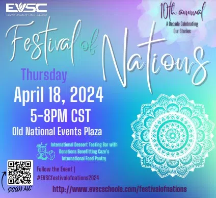 EVSC Festival of Nations will celebrate its 10th anniversary on Thursday, April 18th from 5:00 pm to 8:00 pm. This free family-friendly event will take place at the Old National Events Plaza. There wi...